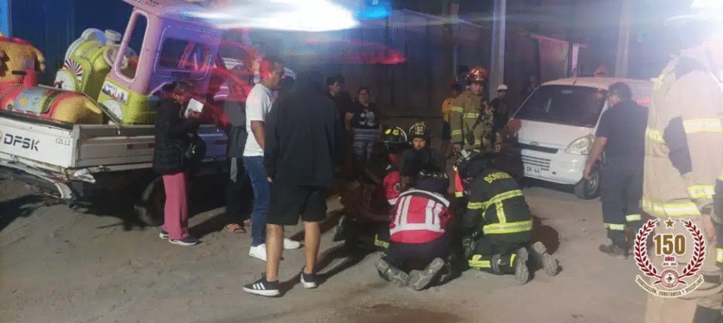 El accidente se registró pasadas las 23:00 horas en la intersección de calle Limonita con Caparrosa. Tras recibir la alerta, unidades de Bomberos (M-1 y B-10) se trasladaron al lugar, confirmando el choque entre los dos vehículos de carga.