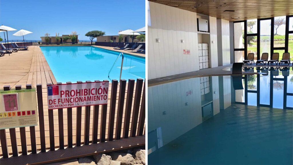 Profesionales de la Unidad de Alimentos y Saneamiento de la Seremi de Salud Antofagasta llevaron a cabo una inspección minuciosa en las instalaciones del hotel. Se encontraron diversas deficiencias en la infraestructura de las piscinas, así como en los parámetros químicos del agua y las Buenas Prácticas de Manufactura en el servicio de alimentación.