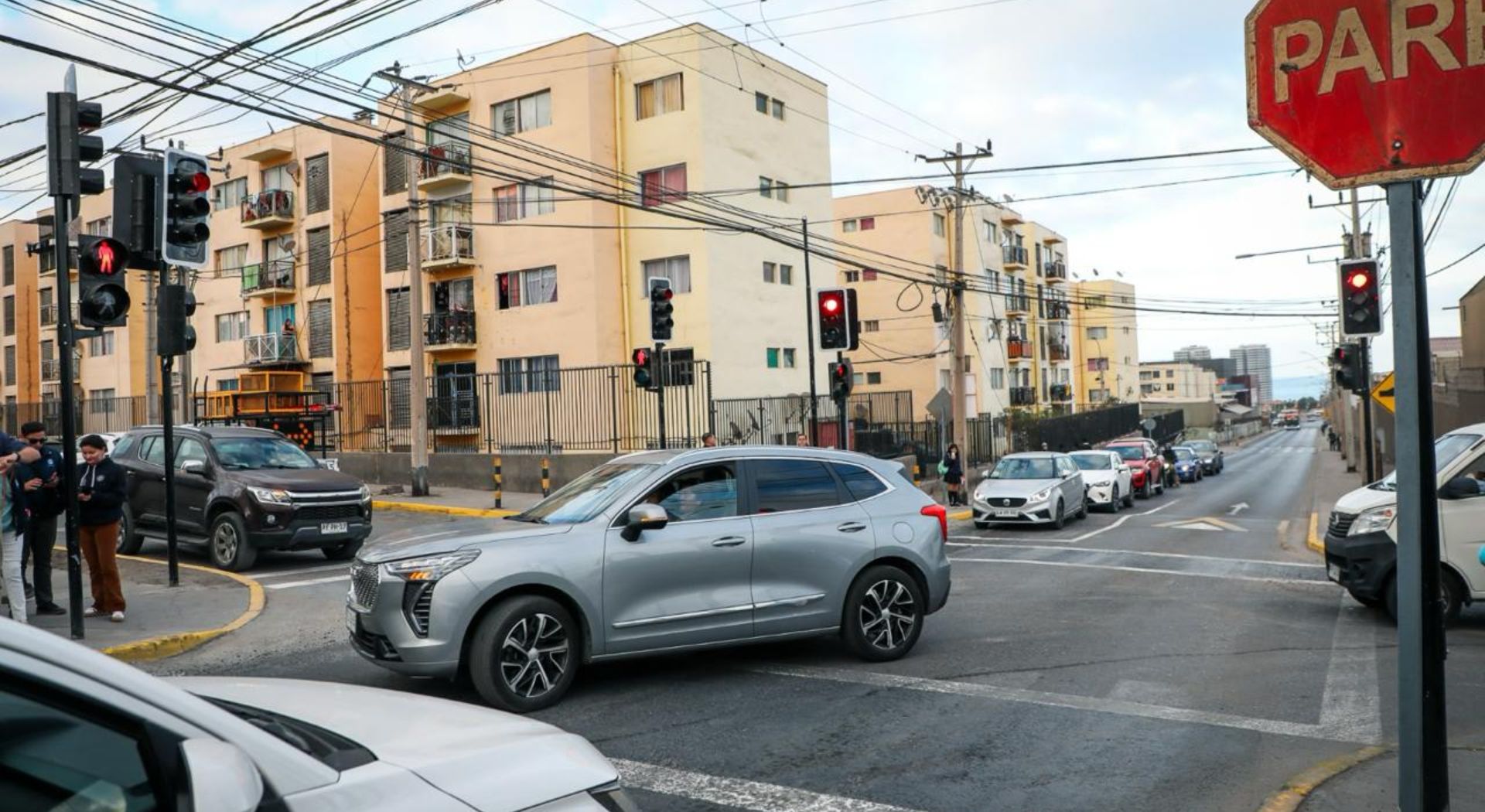 Después de una larga espera, finalmente instalan un semáforo en una concurrida intersección del norte de Antofagasta.