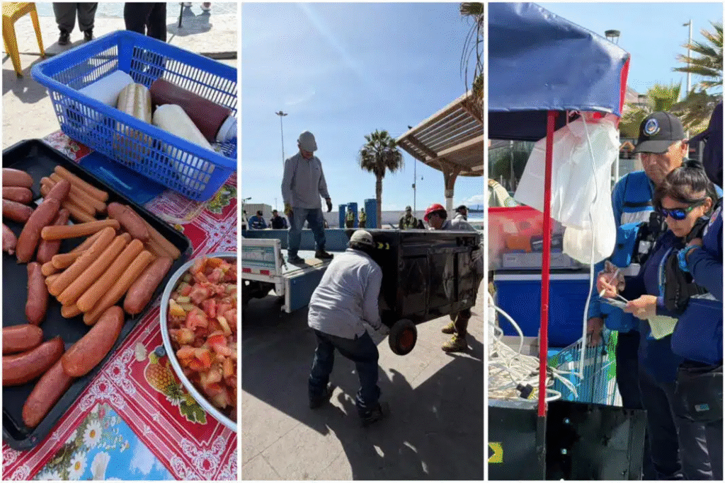 Antofagasta – En un despliegue coordinado entre la Armada, Carabineros y la Municipalidad de Antofagasta, se realizó un operativo de fiscalización en el Balneario Municipal que resultó en el retiro de tres carros de comida informal que ocupaban la vía pública.